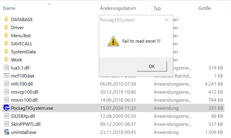 Als laie versucht man nun das sog. Sendeprogramm PocsagTXSystem.exe zu starten und wird dann leider keinen Erfolg haben. Warum?