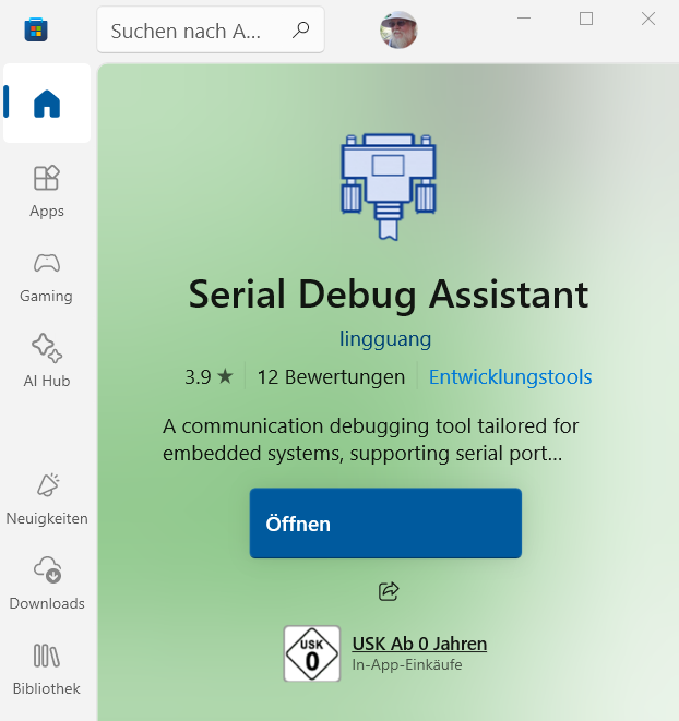Aus dem App-Store von Microsoft kann man sich das Programm: Serial Debug Assistant Installer.exe besorgen,