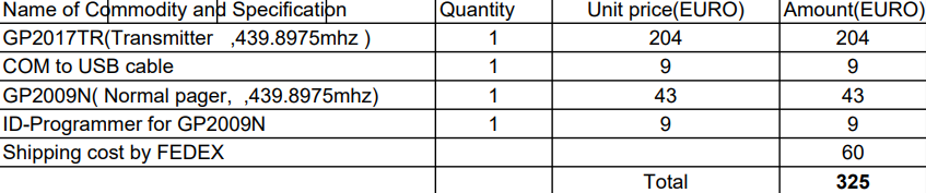 Hersteller und Vertrieb von Pager GP2009N, Sender GP2017TR und mehr